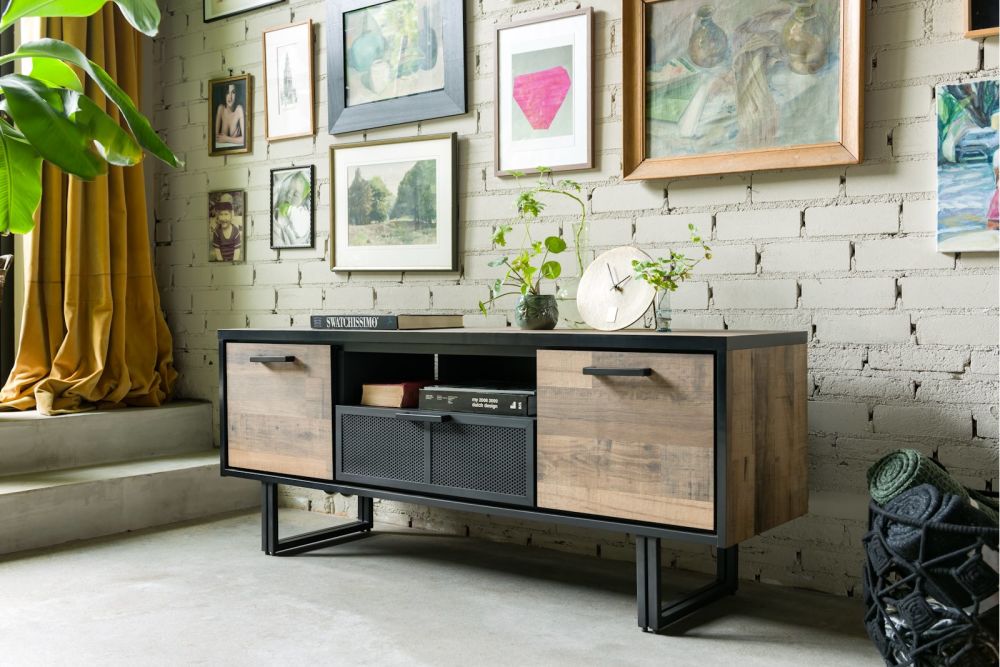 Avalon, lowboard 180 cm – 2-deuren + 1-lade + 1-niche (+ LED) – Driftwood