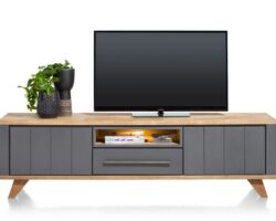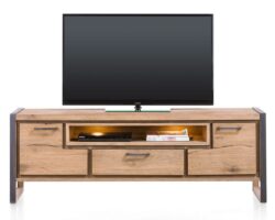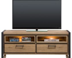 Dit moderne lowboard met stoere metalen details heeft een fraaie natuurlijke uitstraling. Toch is dit lowboard niet gemaakt van hout, maar van Primo Laminato, een sterk en onderhoudsvriendelijk materiaal dat oogt als massief hout. Het dressoir is 150 cm breed, heeft 2 deuren, 1 lade en 1 extra vak met ingebouwde ledverlichting. De kleur van dit lowboard is oak natural vintage, er is ook een variant in de kleur driftwood.