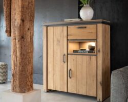 Homestead, highboard 125 cm – 3-deuren + 1-klep + 3-niches (+ LED)