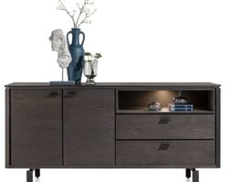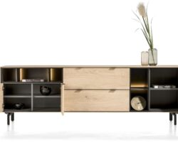 Aramon, dressoir 210 cm. – 2-deuren + 2-glasdeuren + 3-niches (+ LED)