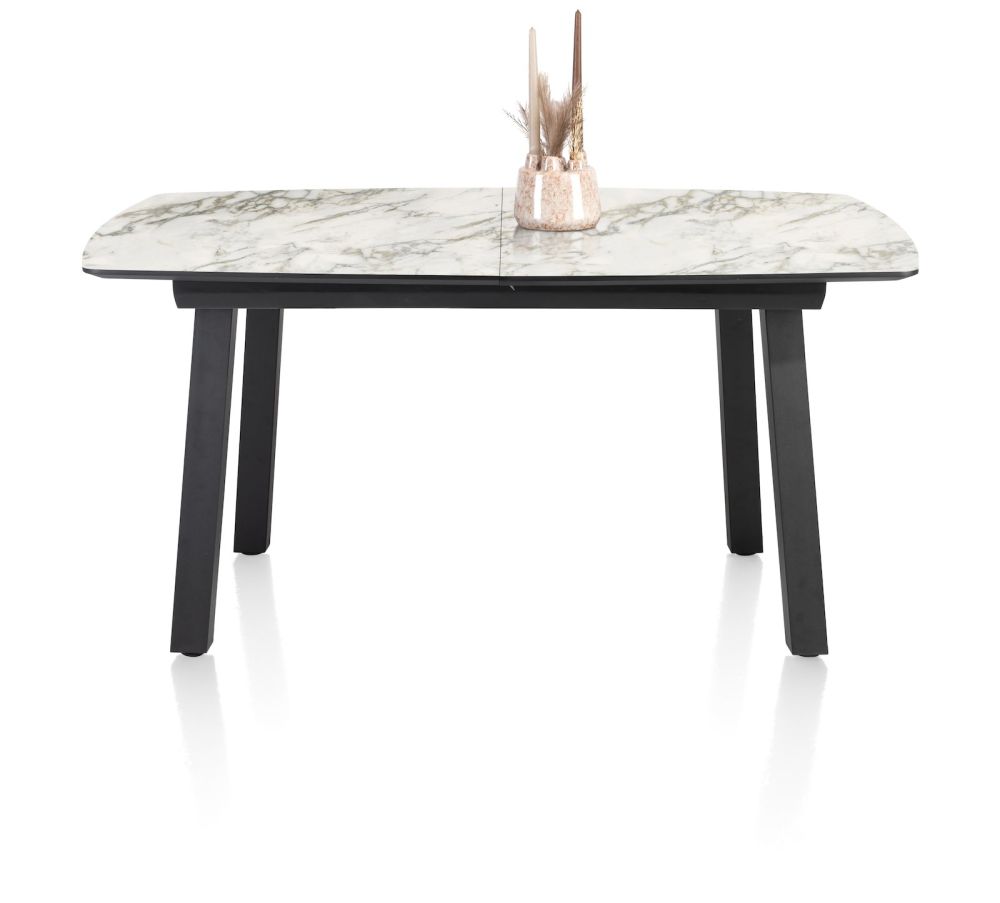 De tafels uit collectie Palace zijn verkrijgbaar in heel wat verschillende formaten, in 5 verschillende kleuren en met 2 verschillende onderstellen. In totaal zijn er zo wel 100 verschillende tafelcombinaties mogelijk! Deze uitschuiftafel heeft een onderstel met 4 poten, heeft een compact tafelblad van 160x110cm, kan met 50cm verlengd worden tot 210cm en is uitgevoerd in een marmerlook in de kleur wit. Het tafelblad is gemaakt van Primo Laminato (HPL), een uiterst onderhoudsvriendelijk materiaal en het onderstel is van zwart metaal. Is deze tafel toch niet wat je zoekt? Er zijn nog heel wat andere kleuren en formaten verkrijgbaar!