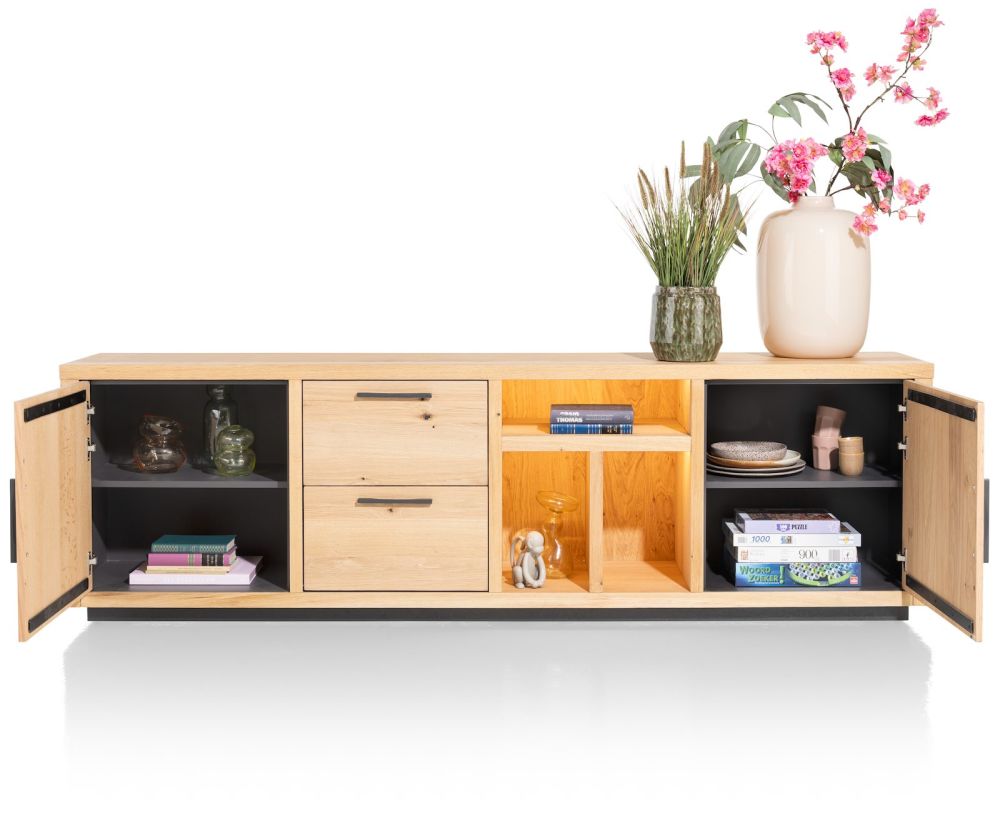 Pavie, dressoir 233 cm – 2-deuren + 2-laden + 3-niches (+ LED) – natural