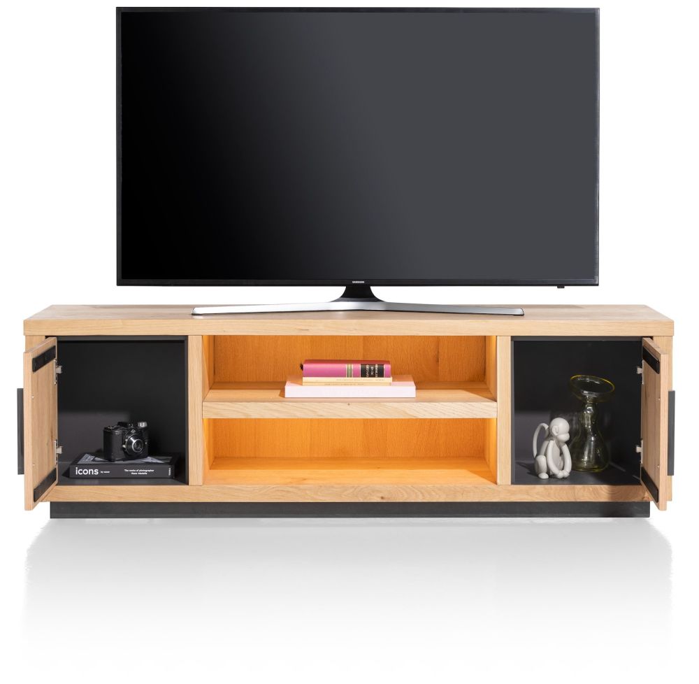 Pavie, lowboard 160 cm – 2-deuren + 2-niches (+ LED) – natural