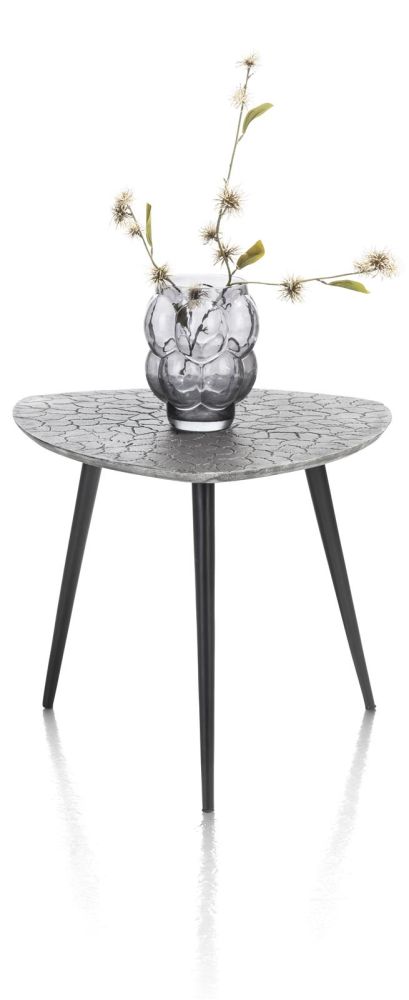 Deze salontafel uit collectie Dorval is volledig van metaal en is apart te plaatsen, maar kan ook deel uitmaken van een salontafelset. Deze salontafel meet 53x54cm en heeft een organische vorm. Het tafeltje is 46cm hoog. Het tafelblad van deze tafel is zilverkleurig met een reliëf-textuur en de tafel heeft zwarte metalen poten, maar er is ook een versie met een goudkleurig tafelblad en goudkleurige poten verkrijgbaar. Voor welke ga jij?