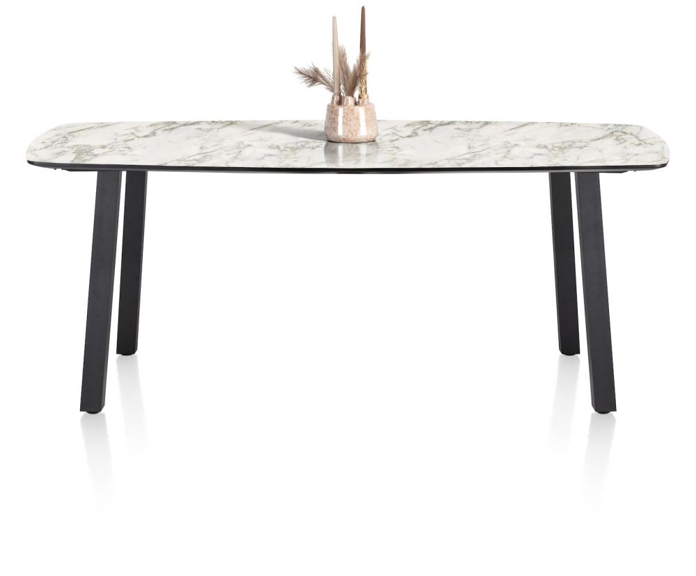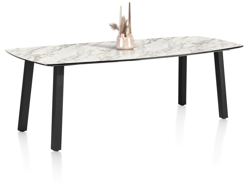 De tafels uit collectie Palace zijn verkrijgbaar in heel wat verschillende formaten, in 5 verschillende kleuren en met 2 verschillende onderstellen. In totaal zijn er zo wel 100 verschillende tafelcombinaties mogelijk! Deze bartafel heeft een onderstel met 4 poten, heeft een tafelblad van 210x110cm en is uitgevoerd in een marmerlook in de kleur wit. Het tafelblad is gemaakt van Primo Laminato (HPL), een uiterst onderhoudsvriendelijk materiaal en het onderstel is van zwart metaal. Is deze tafel toch niet wat je zoekt? Er zijn nog heel wat andere kleuren en formaten verkrijgbaar.