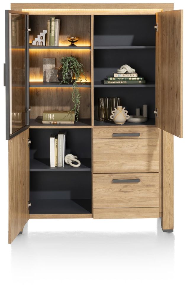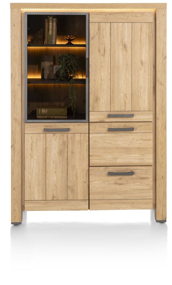 Delmonte, Bergkast 120 Cm – 1-Glasdeur + 2-Deuren + 2-Laden (+ LED)