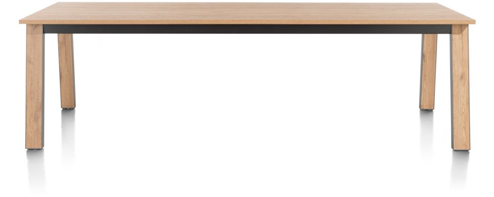 Bij de kastencollectie Delmonte horen ook gelijknamige tafels in dezelfde stijl en hetzelfde materiaal. Deze tafels hebben een eerder klassieke, rechthoekige vorm en zijn standaard uitgevoerd met 4 poten. Deze poten zijn van metaal in grafietkleur, maar hebben een HPL inleg in dezelfde kleur als het tafelblad, dat ook is uitgevoerd in hoogwaardig Primo Laminato (HPL). Dit is de grootste eetkamertafel uit de collectie, meet 230x100cm en is 77cm hoog.