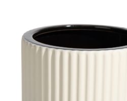 De basic woonstijl staat voor rust en eenvoud en deze vaas HALEY uit de collectie van COCOmaison sluit daar perfect bij aan. Keep it simple met dit witte keramieken pronkstuk voor op je keukentafel, het kookeiland of op een mooie bijzettafel. HALEY heeft een stijlvolle lijnenstructuur aan de buitenkant en een zwarte binnenkant. De vaas is waterbestendig en verkrijgbaar in twee maten. Dit exemplaar is 29 cm hoog en je shopt HALEY ook in een maatje kleiner.