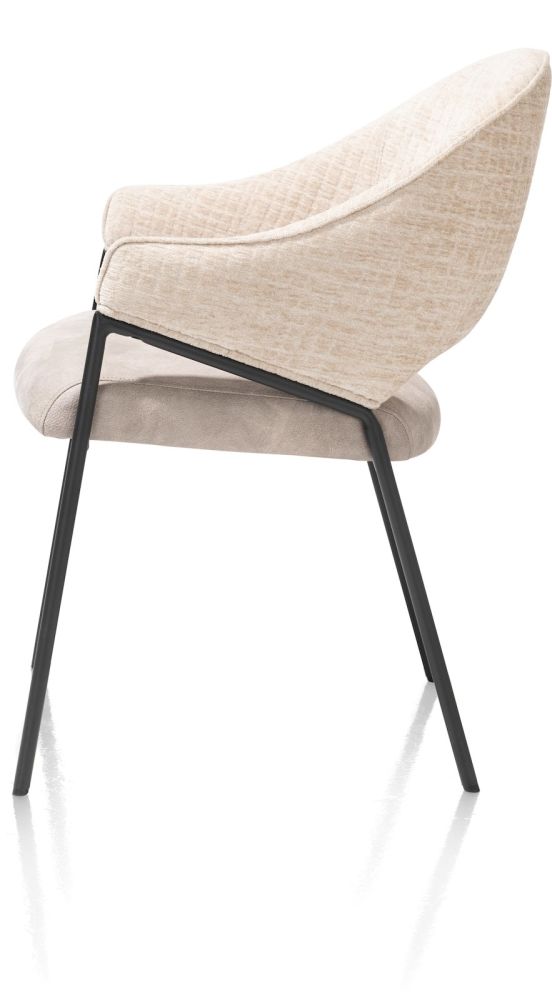 Ben je op zoek naar een armstoel met een luxe en tegelijk industriële look? Laat je verrassen door deze crèmekleurige armstoel NOLAN uit de collectie van XOOON. NOLAN is een stoere stoel met een zwart metalen onderstel. De zitting is uitgevoerd in microleder Taurus en de rug is voorzien van de luxe stof Wave; een zachte stof met een mooie glans. Het duidelijk zichtbare ruitpatroon in de rug geeft NOLAN een stijlvolle look. De stoel is er ook in het antraciet, ice grey en olijfkleur. Creëer meerdere kleuren voor een speelse touch.