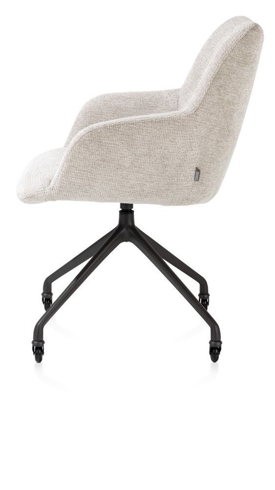Deze stijlvolle armstoel MATS rol je er gemakkelijk even bij. Hij staat namelijk op een grafietkleurige, aluminium kruispoot met wielen. Kies zelf je bekleding in stof uit onze selected choices collectie.Naar wens is MATS ook verkrijgbaar met een frame dat 360° draaibaar is. Ook is een versie verkijgbaar met een metalen 4-poot.