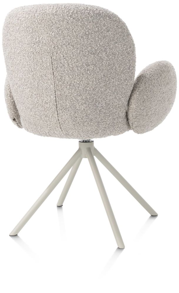 Heerlijk zacht en superstijlvol, dat is deze armstoel JAXON uit de collectie van XOOON. Een wolk van een stoel, uitgevoerd in de grove bouclé stof Brioni waaraan hij zijn aaibaarheid te danken heeft. Of je nou kiest voor deze kiezelkleur, of voor de ivoor- of leverkleurige variant; op armstoel JAXON blijf je graag wat langer zitten na het ontbijt. Een fijn extraatje is dat hij 180 graden draaibaar is en een terugdraaifunctie heeft. Hierdoor ben je binnen no time op twee plekken tegelijk. De ronde vorm en de strakke centrale 4-poot in silk grey geven armstoel JAXON een moderne touch. Zie jij hem al staan aan jouw eettafel?