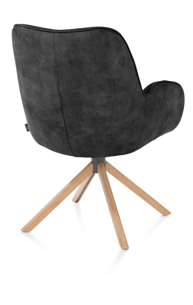 Riley, armstoel 4-poots naturel eiken – draaibaar + pocket – stof Taurus – off black