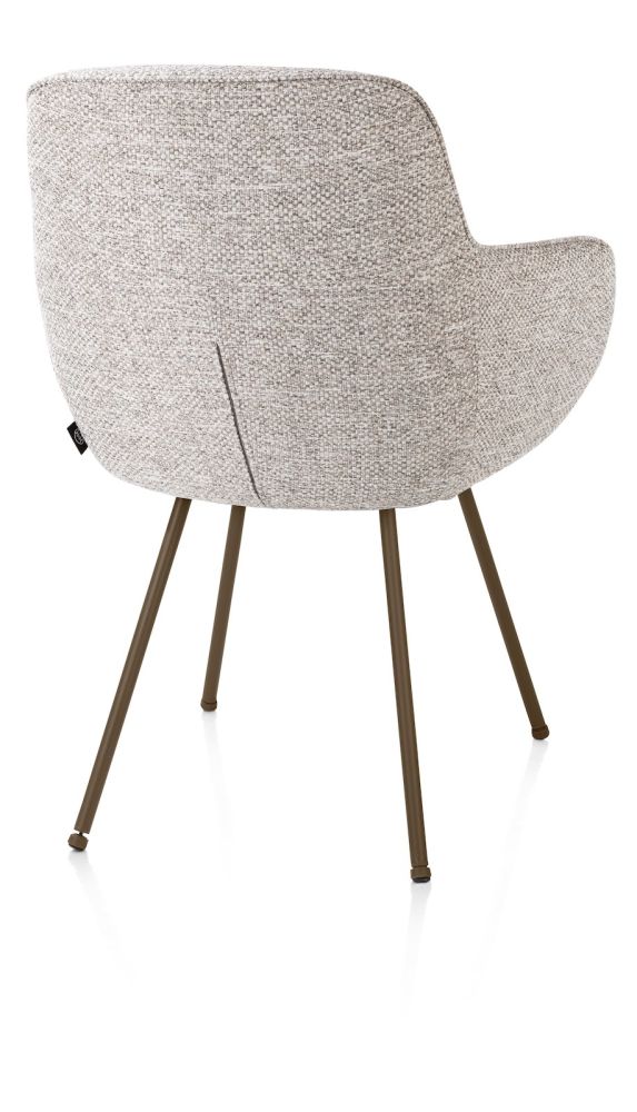 Deze uitvoering – een armstoel – onderscheidt zich door zijn slanke silhouet, verfijnde stiknaden en zachte bekleding – een stijlvolle aanvulling die elke eethoek een geraffineerde uitstraling geeft. De ergonomisch gevormde rug en zitting bieden optimaal comfort, zelfs tijdens lange, gezellige diners.Dankzij het veelzijdige karakter voelt Mateo zich thuis in elk interieur, van modern en strak tot warm en klassiek. Verkrijgbaar met of zonder armleuningen, in een brede waaier aan stoffen en kleuren, én met onderstellen naar keuze: vast, op wieltjes of draaibaar voor extra gebruiksgemak.Deze armstoel is voorzien van vier poten in steel brown en bekleed met de stof Bellini in kiezel – een geslaagde combinatie van subtiele elegantie en een stoer accent.