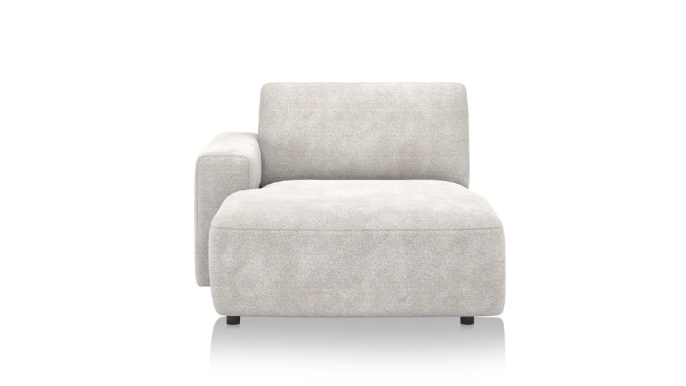 Deze extra lange longchair met armleuning links, is een elegant en flexibel onderdeel van je modulaire hoeksalon. Dankzij de volledig rondom gestoffeerde afwerking staat hij prachtig als los meubelstuk, maar hij laat zich ook moeiteloos combineren met andere elementen uit dezelfde collectie.Je bepaalt zelf de ideale opstelling, want elk deel staat op zichzelf en past naadloos in jouw indeling. De antislippoten voorkomen schuiven en laten je bovendien kiezen tussen twee zithoogtes. Met een ruime keuze aan stoffen, kleuren en zitcomfort stel je je longchair volledig naar wens samen. Kortom: stijl, comfort en maatwerk in één slim ontwerp.