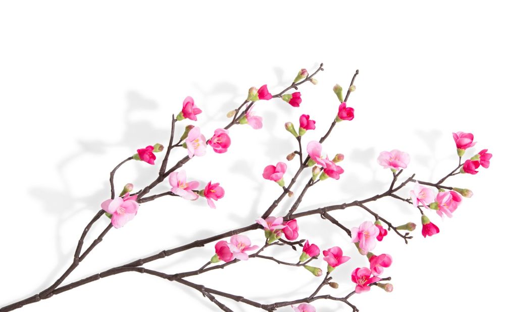 Word jij ook zo vrolijk van bloesem in het voorjaar? Lange takken met knoppen die op uitbarsten staan kondigen luid de zomer aan. Deze QUNINCE SPRAY, oftwel kweepeerbloesemtak heeft dieproze knoppen en lichtroze bloemen, en kun je samen met andere kunstbloemen uit het COCOmaison assortiment prachtig combineren tot een kleurrijk voorjaarsboeket. Een enkele bloesemtak in een grote vaas past overigens ook helemaal in de Japandi stijl die nu trendy is.