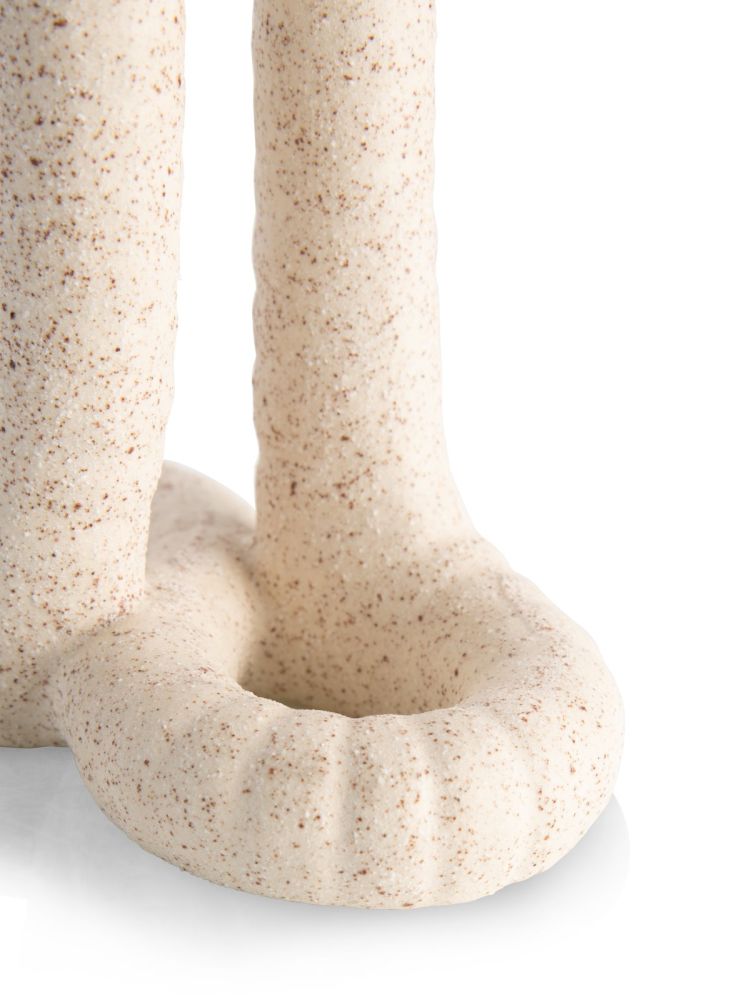 KIKI is een schattig vaasje van COCOmaison in twee verschillende modellen. Beide zijn geïnspireerd op een koord, dat in dit geval twee lussen vormt. De hoogste van dit model is 17 cm, de andere is 15 cm. Het vaasje heeft twee smalle openingen waar je een takje of bloem in kunt zetten. KIKI is gemaakt van polyresin en heeft een crèmekleurige betonlook.