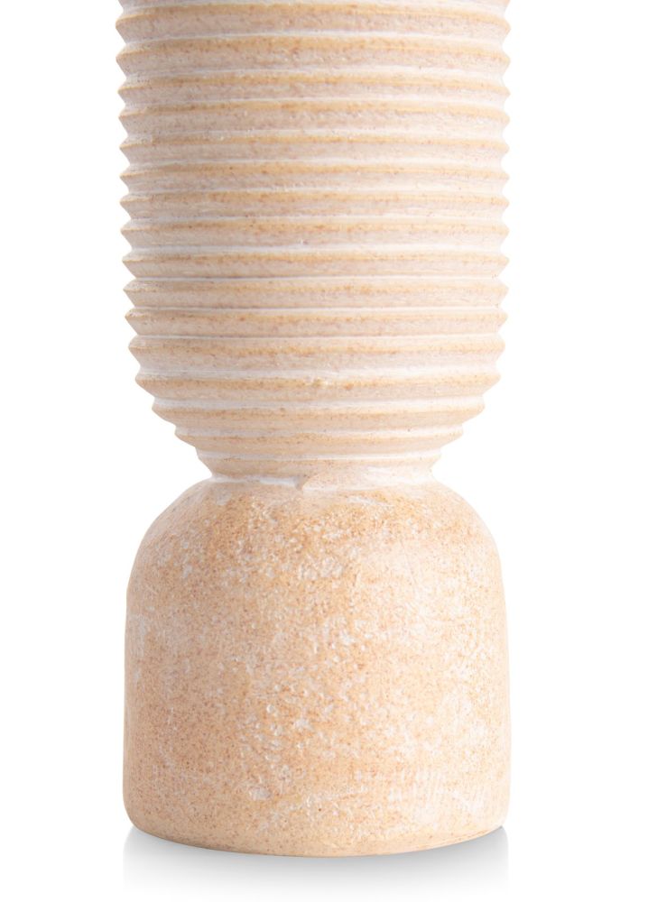 De leuke NOVA vaas van COCOmaison is 19 cm hoog. Hij is uitgevoerd in polyresin met een betonlook. De vaas heeft een egaal zachtoranje design en het bovenste deel is versierd met subtiele horizontale lijntjes. Door de eenvoud van het ontwerp komen de bloemen die je erin zet nog beter tot hun recht. Zonder bloemen is de vaas overigens ook prachtig om te zien en laat hij zich goed combineren met andere modellen in vergelijkbaar materiaal en/of vergelijkbare kleuren. Bijvoorbeeld met zijn grote broer, 31 cm groot en geheel wit.