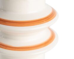 De polyresin kandelaar LOT van COCOmaison is er in 2 uitvoeringen, dit crème met roodbruin model en een roodbruin met crème exemplaar. Beide zijn 16 cm hoog en hebben een modern strak design, maar met een beetje fantasie zie je er misschien een poppetje in. Hij is geschikt voor een lange smalle kaars en komt helemaal mooi tot zijn recht als je hem combineert met zijn broertje.