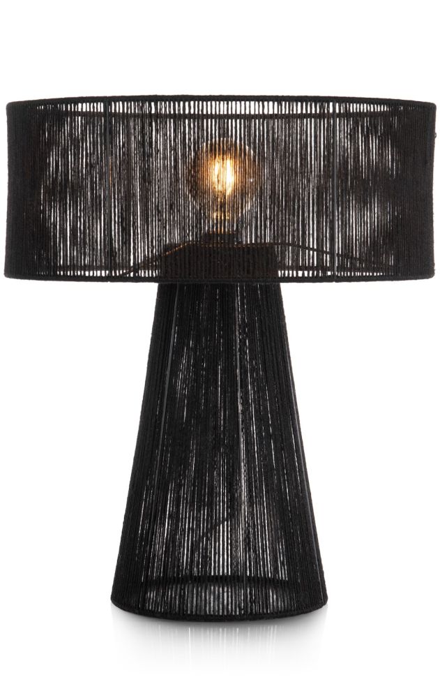 De TALI lampenserie van COCOmaison bestaat uit maar liefst 5 verschillende lampen die je onderling allemaal kunt combineren. Elke lamp heeft een strak design en is gemaakt van handgeweven jute draad. Deze tafellamp heeft een hoogte van 57 cm en een doosnede van 50cm. Hij is verkrijgbaar in het zwart en in naturel, net als de vloerlamp met een vergelijkbaar ontwerp. Dit is de zwarte variant. In de bijpassende hanglamp worden die twee kleuren gecombineerd. Elke lamp heeft een E27 fitting voor 1 ledlamp.