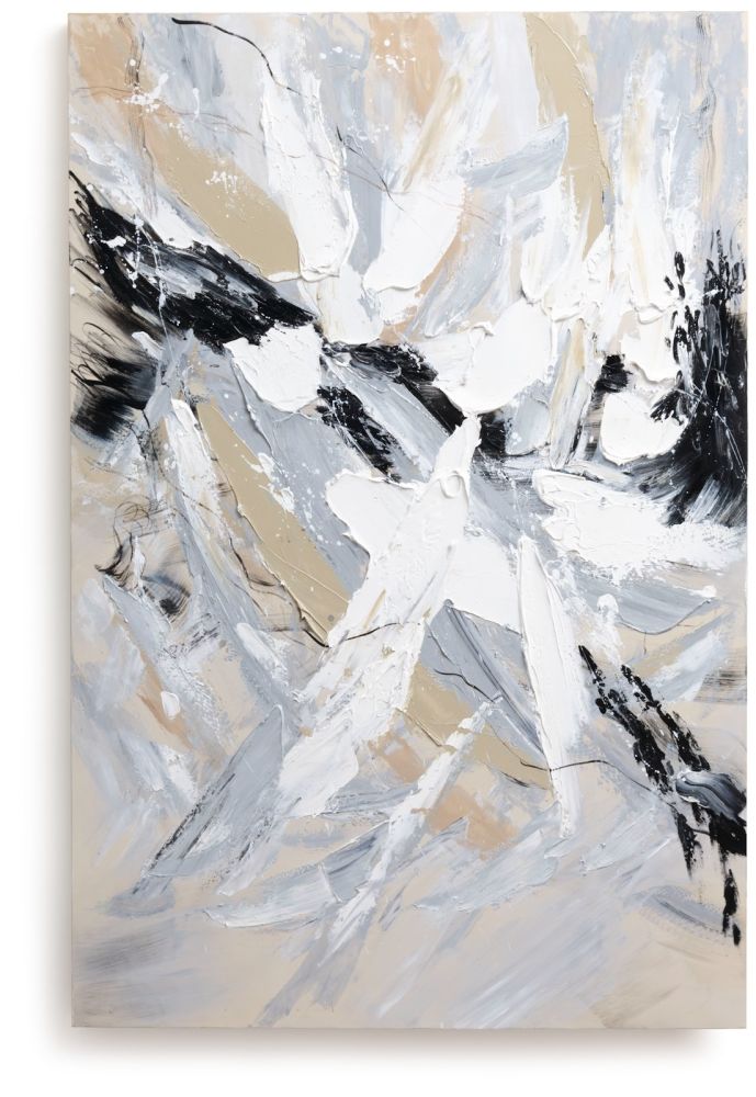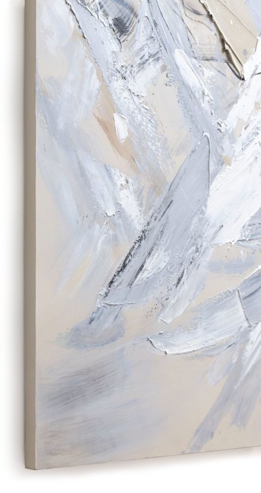 Bij dit flinke schilderij Abstract Power van maar liefst 120 x 180 cm spat de energie van het doek af. Het schilderij is met de hand geschilderd op canvas, en door de dikke verflagen krijgt het een prachtig 3D-effect. De kleuren die zijn gebruikt zijn wit, zwart, grijs en beige. Het schilderij bestaat uit 30% hout (frame), 30% stof (doek) en 40% verf en er zit geen lijst omheen. Ontdek ook de andere schilderijen in de collectie van COCOmaison!