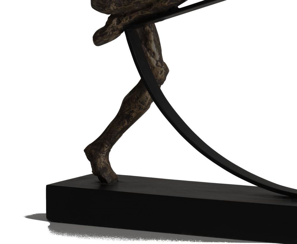 Met dit abstracte beeld Pushing van COCOmaison maak je je styling helemaal compleet. Het met de hand geboetseerde beeld laat een man zien die ene halve cirkel vooruitduwt. Het heeft een zwarte kleur met een mooie vintage gouden finish en is de ideale toevoeging voor bijvoorbeeld je vensterbank of voor een open vak in een kast. Het beeld is gemaakt van een combinatie van metaal en polyresin, is 40 cm breed en 33 cm hoog. Combineer beeld Pushing met het bijpassende beeld Climbing.