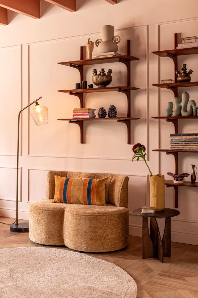 Dit bankje uit de Roan-serie van COCOmaison is met zijn bolle vorm een opvallende verschijning. In de serie zitten ook nog twee poefs en een fauteuil en alle elementen zijn door hun vorm perfect met elkaar te combineren. Ze zijn bekleed met een trendy stof en zijn verkrijgbaar in twee kleuren. Dit bankje is uitgevoerd in kleur oker en gemaakt van 30% metaal, 15% multiplex, 30% schuim en 25% stof. Goed om te weten: er worden twee sets poten meegeleverd, waardoor je de fauteuil op een standaard zithoogte kunt plaatsen, maar ook op een hoogte die geschikt is voor gebruik aan een eettafel. Het bankje is 120 cm breed, 71 cm diep en heeft inclusief rugleuning een hoogte van 74 cm.