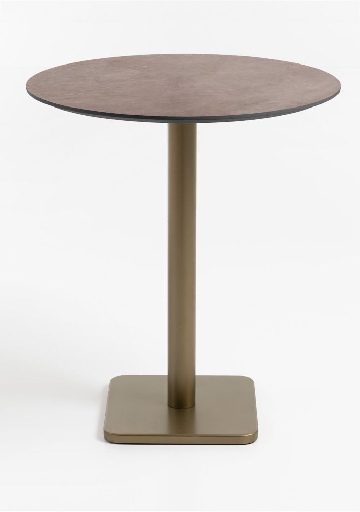 Klein (eet-)hoekje inrichten? COCOmaison heeft dé oplossing voor je! In onze Brest-serie vind je namelijk heel veel leuke bistro- en bartafeltjes. De tafels hebben allemaal een metalen poot, die verkrijgbaar is in goud of zwart en een blad van eikenhout, steen of marmer. Je kunt daarnaast telkens kiezen uit een ronde, vierkant of rechthoekige variant. Door al die verschillende uitvoeringen kun je uit maar liefst verschillende 72 tafeltjes kiezen! Superhandig én stijlvol dus! Dit is de ronde bartafel met een diameter van 80 cm, een goudkleurige poot en een blad van steen in kleur roest.