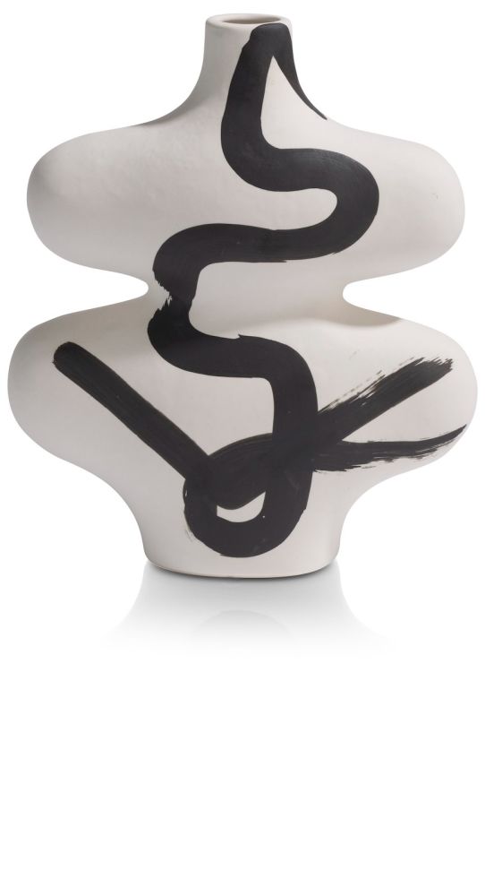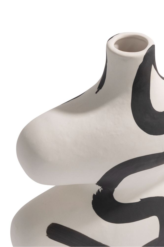 De Curvy vaas van COCOmaison is een strakke, moderne vaas die stijl en elegantie in je huis brengt. Deze keramieken vaas van 26 cm hoog heeft een mat witte kleur en is voorzien van zwarte strepen die met de hand zijn aangebracht. De vaas heeft een organische vorm en is ook zonder bloemen een ware eyecatcher! De Curvy vaas is ook verkrijgbaar in een grotere variant en als bijpassende schaal.