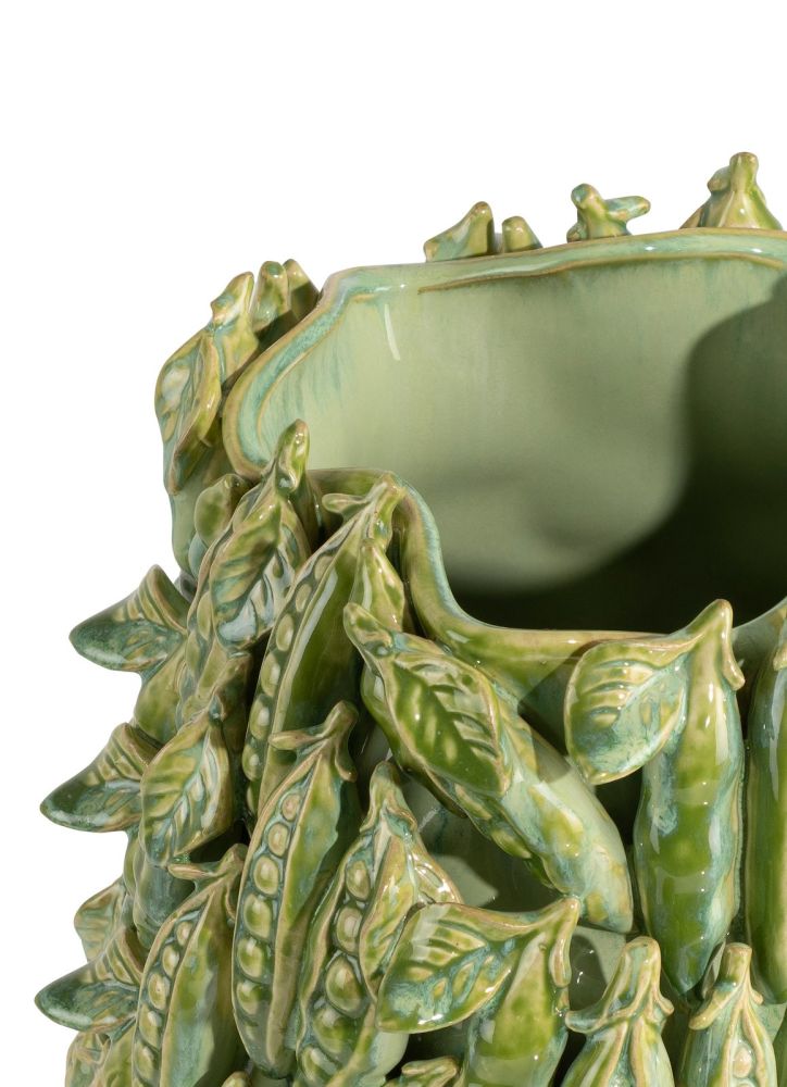 De Peas in a Pot vaas van COCOmaison is een unieke vaas die je interieur meteen karakter geeft. Deze vaas is gemaakt van 100% keramiek en is versierd met prachtig gedetailleerde 3D bonen en erwtjes. Hij is 45 cm hoog en afgewerkt in een groen glazuur. De Peas in a Pot vaas is met de hand gemaakt en elke vaas is dus uniek. Of je nu bloemen toevoegt, of de vaas wegzet als decoratief object; het is een ware blikvanger!
