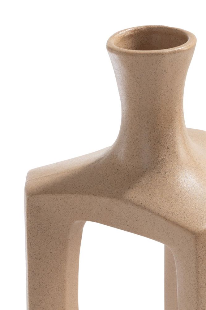 De Jules vaas van COCOmaison is een unieke vaas die je interieur een verfijnde uitstraling geeft. Deze speciale keramieken vaas heeft een driehoekige vorm met openingen, waardoor het een decoratief object is, ook zonder (kunst)bloem! Door de afwerking met beige zandstructuur valt dit item zeker op. De Jules vaas is 42 cm hoog en ook verkrijgbaar in een kleinere variant.