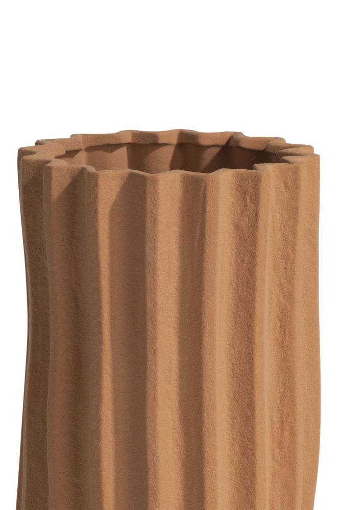 De Jelle vaas van COCOmaison heeft een natuurlijke, rustieke charme over zich. Deze 30 cm hoge keramieken vaas valt op door het subtiele lijnenreliëf op de buitenkant dat doet denken aan de golvende vormen van de landbouwvelden. De vaas heeft eenr uwere structuur, wat zorgt voor een aards gevoel. De Jelle vaas is afgewerkt in een mooie terracotta/oranje kleur en past perfect in iedere ruimte!