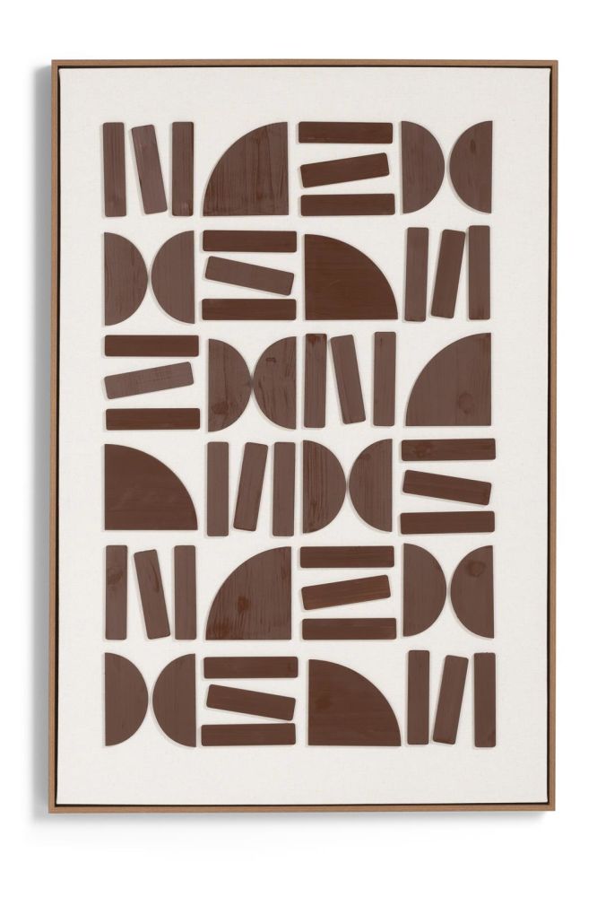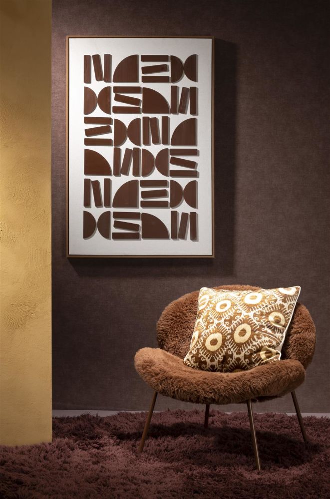 Het Rune schilderij van COCOmaison is een unieke toevoeging aan je interieur. Dit 80 x 120 cm kunstwerk combineert een crème basis met een stijlvol bruin patroon, waardoor het perfect past in zowel moderne als natuurlijke interieurs. Het bijzondere aan dit schilderij is het 3D-effect, gecreëerd door de houten organische objecten die speels op het doek zijn bevestigd. Hierdoor krijgt het kunstwerk extra diepte. Het Rune schilderij kan zowel horizontaal als verticaal worden opgehangen, wat je flexibiliteit geeft bij het inrichten van je ruimte.