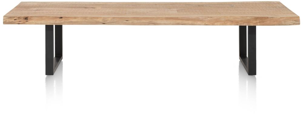 Geef je zithoek een natuurlijke touch met de salontafels uit collectie Living! De salontafels uit deze collectie – die geweldig goed passen bij de gelijknamige eetkamertafels – zijn gemaakt van massief kikarhout en hebben een natuurlijke boomstamvorm. De tafels zijn stuk voor stuk met de hand afgewerkt, dus de vorm van deze tafels is altijd uniek. Zo ben je altijd zeker van een uniek meubel! Elke salontafel heeft twee zwart metalen poten die de collectie een stoere touch geven. Er zijn 3 verschillende formaten beschikbaar: hier zie je de grootste salontafel met een afmeting van +/- 180x60cm. De salontafel is steeds 38cm hoog.