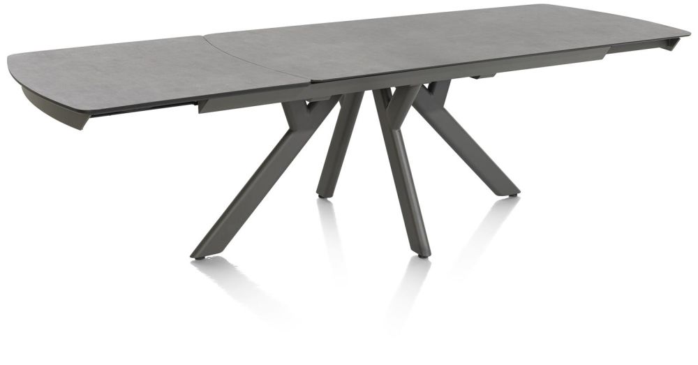 In collectie Vegas van Henders & Hazel vind je 2 verschillende uitschuiftafels in 2 verschillende kleuren marmerlook. Dit is de antracietkleurige versie met een tafelblad van 200cm, dat met een ingenieus systeem te verlengen is tot een tafelblad van 280cm. Deze uitschuiftafels hebben een blad van keramiek op glas en zijn dus uiterst robuust. Daarnaast heeft de tafel een antraciet metalen onderstel dat bijdraagt aan de robuuste look van de tafel. Ook erg leuk aan deze tafels is dat het patroon in de marmerlook over heel het tafelblad doorloopt wanneer de tafel volledig is uitgeschoven.