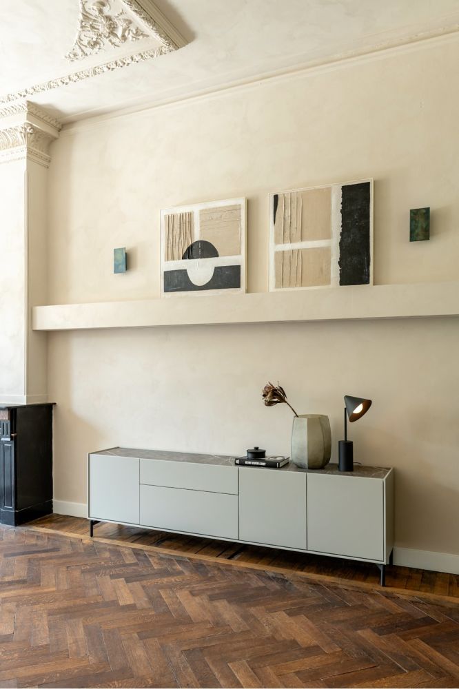 Noon, dressoir 240 cm – 3-deuren + 2-laden – geheel silk grey