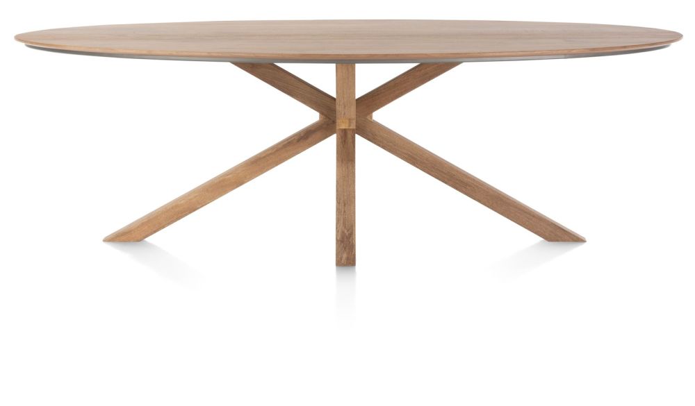De eetkamertafels binnen de Trapani-collectie worden gekenmerkt door een prachtig ovale bovenblad en een centrale massief houten poot. Dankzij die centrale poot schuif je makkelijk een extra stoel aan voor een onverwachte gast. Deze tafel is de op-één-na-kleinste in het assortiment en heeft een lengte van 210 cm. Alle tafels zijn gemaakt van smoked mangiferafineer, en afgewerkt met een laklaag voor een subtiele glans en extra vlek- en krasbestendigheid.