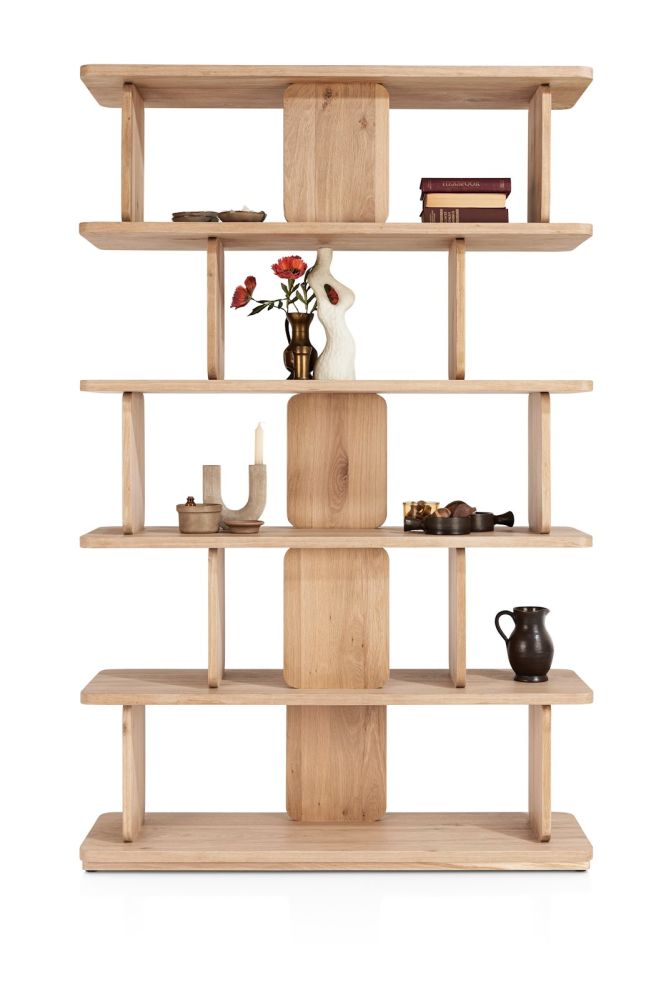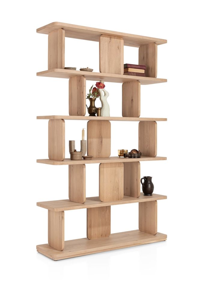 De Scandinavische woonstijl is immens populair, en dat komt perfect tot uiting in de Azulo- en Azulaar-collecties van Henders & Hazel. Deze collecties combineren alle essentiële kenmerken van deze stijl. De meubels zijn vervaardigd uit natuurlijk eikenfineer met een lichte laklaag, terwijl de tafelbladen van massief eikenhout zijn. Het ontwerp is zo puur mogelijk, zonder toevoeging van andere materialen, lijsten of handgrepen. De deuren en lades zijn verfijnd afgeschuind en standaard uitgerust met een soft-closing systeem.Binnen de Azulaar-collectie vind je drie open kasten die zowel tegen een muur als vrij in de ruimte kunnen worden geplaatst. Hierdoor kunnen ze niet alleen als boekenkast dienen, maar ook als sidetable of roomdivider. Dit specifieke model beschikt over 20 niches en heeft een hoogte van 187 cm, een breedte van 120 cm en een diepte van 35 cm.