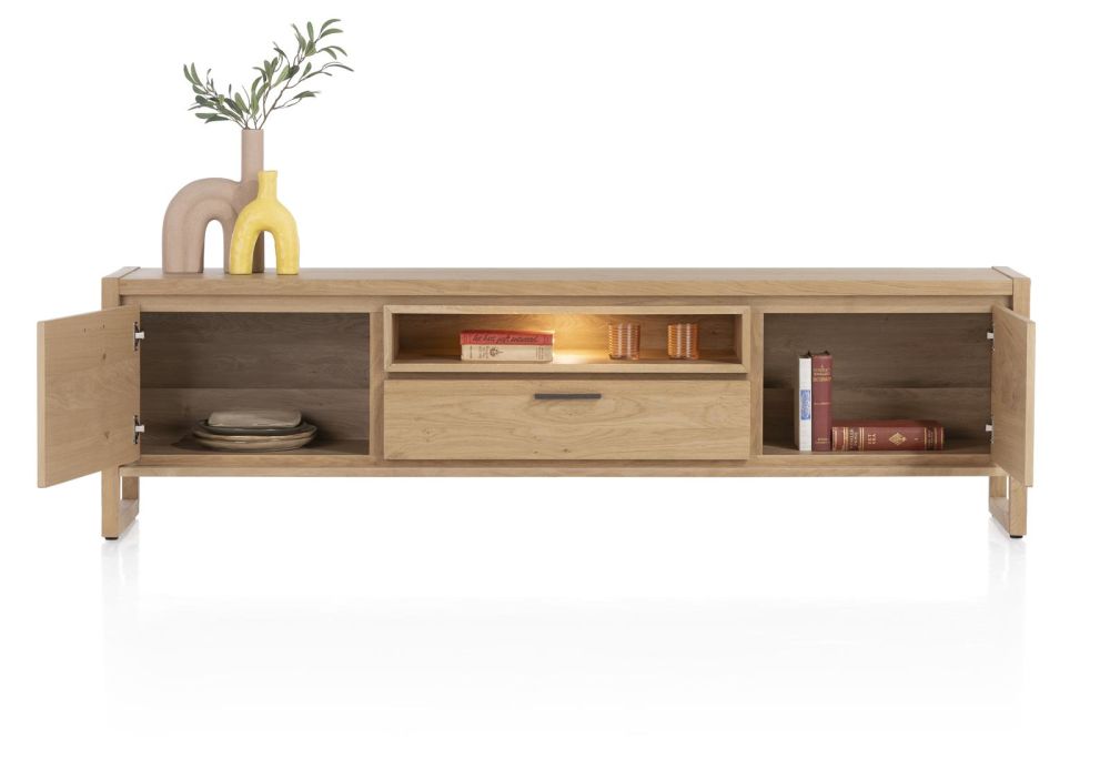 Nystead, Lowboard 210 Cm. – 2-Deuren + 1-Lade + 1-Niche (+ LED)