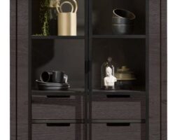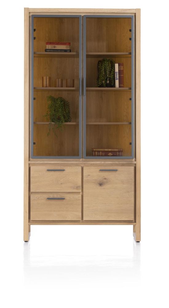 Nystead, Vitrine 100 Cm. – 2-Glasdeuren + 1-Deur + 2-Laden (+ LED)
