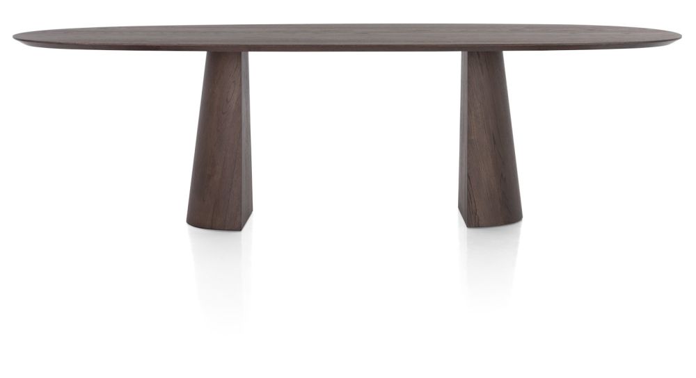 Doorbreek de rechte lijnen in je interieur met deze organische eetkamertafel TRENTON! Deze tafel van eikenfineer staat op twee halve conische poten die je centraal onder de tafel kunt plaatsen of aan de uiteindes; de keuze is aan jou. De poten zijn aan de binnenzijde verzwaard om maximale stabilteit van de tafel te garanderen. Het organische blad heeft een afmeting van maar liefst 270 x 120 cm; hierdoor biedt TRENTON genoeg plek voor het hele gezin. De eetkamertafel is uitgevoerd in de kleur clay. Voor een natuurlijk effect in je interieur shop je TRENTON ook in de kleur naturel. Ontdek ook de salontafels en de kasten uit de TRENTON collectie!
