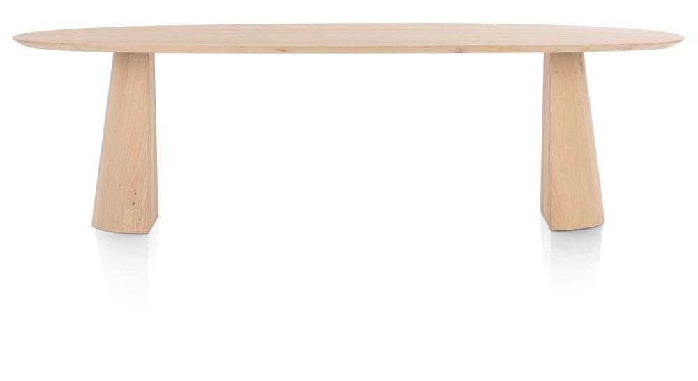 Uren tafelen en borrelen met vrienden en familie wordt een feestje aan eetkamertafel TRENTON. Deze organische eyecatcher is gemaakt van naturelkleurig eikenfineer en heeft een afmeting van maar liefst 270 x 120 cm. Ga je liever voor iets meer pit, kijk dan eens naar de variant in de kleur clay. TRENTON staat op twee halve conische poten die op twee posities te plaatsen zijn: centraal of aan de uiteindes. De poten zijn aan de binnenzijde verzwaard om maximale stabilteit van de tafel te garanderen. Zie jij hem al staan in je eetkamer? Kijk vooral ook eens naar de prachtige salontafels en kasten uit deze serie!