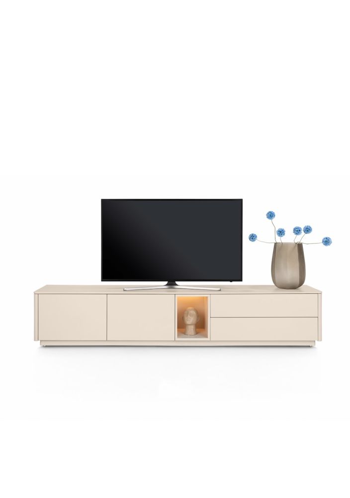 Trentino, Lowboard 240 cm. – 2-deuren + 2-laden + 1-niche – mdf gelakt – Creme