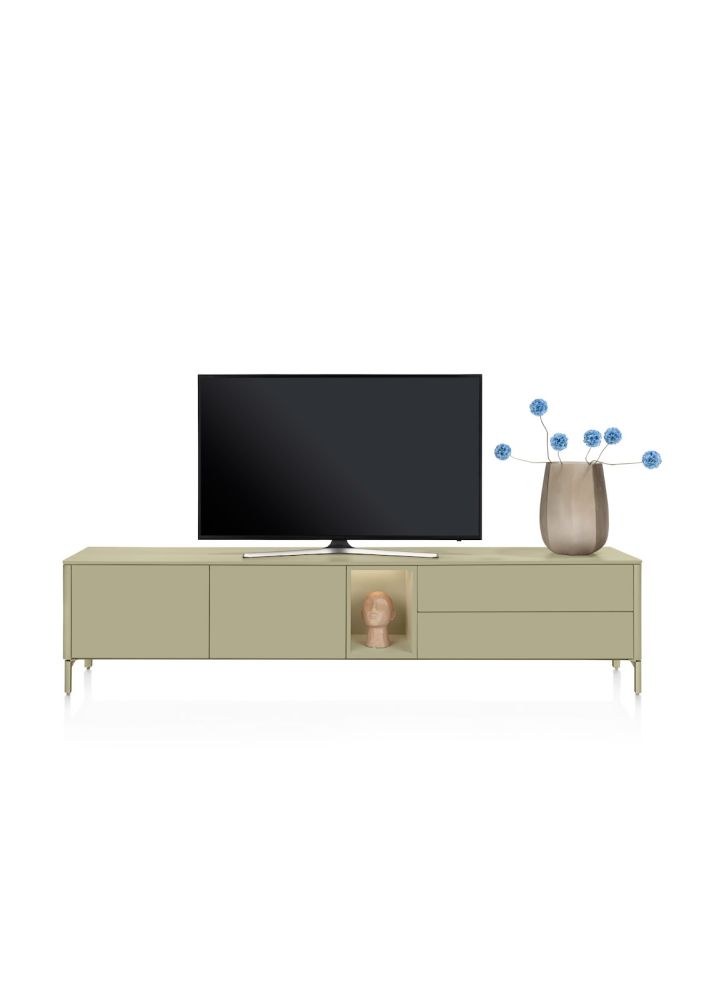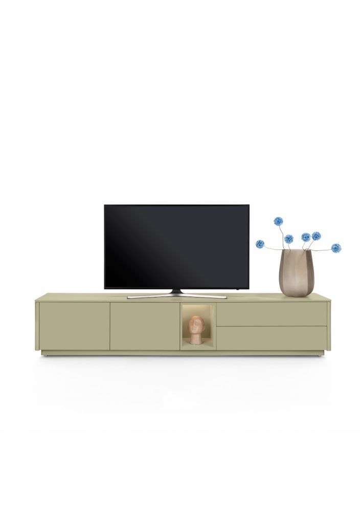 Trentino, Lowboard 240 cm. – 2-deuren + 2-laden + 1-niche – mdf gelakt – Olijf