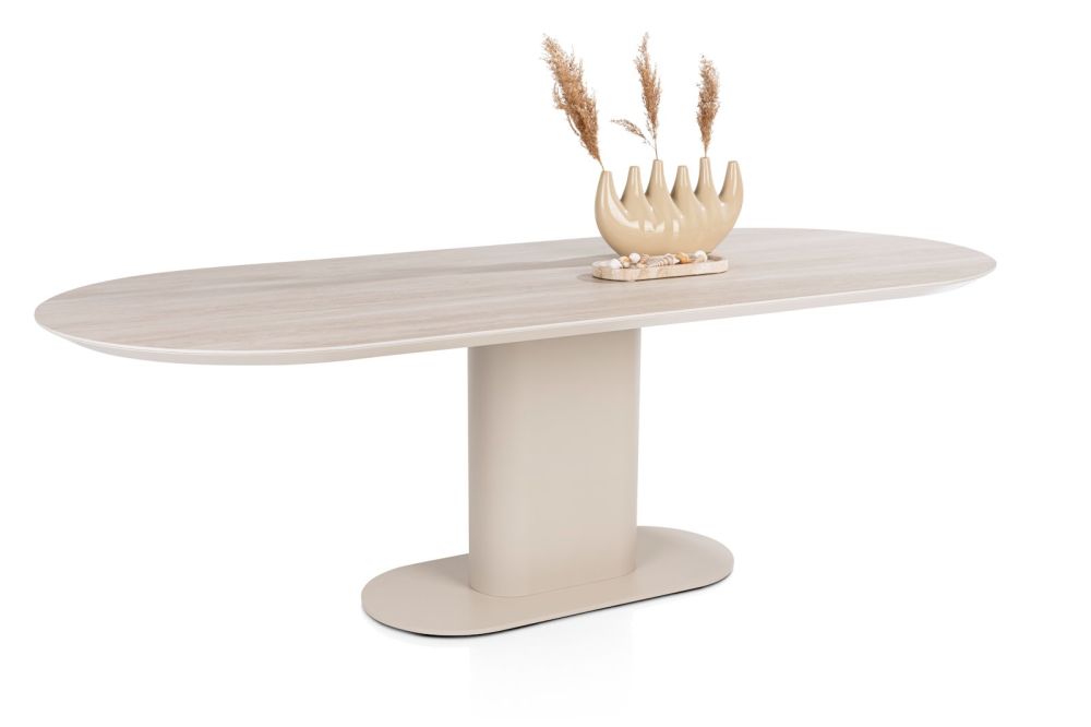 Brianto, eetkamertafel 240 x 100 cm – keramiek blad Travertin – Creme