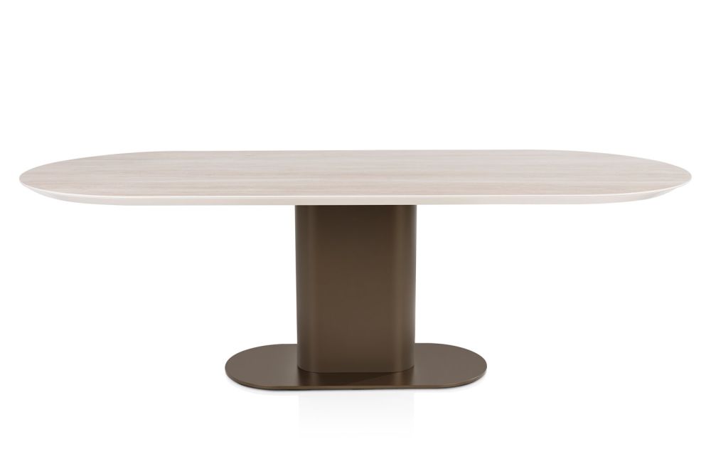 Brianto, eetkamertafel 240 x 100 cm – keramiek blad Travertin – Steel Brown