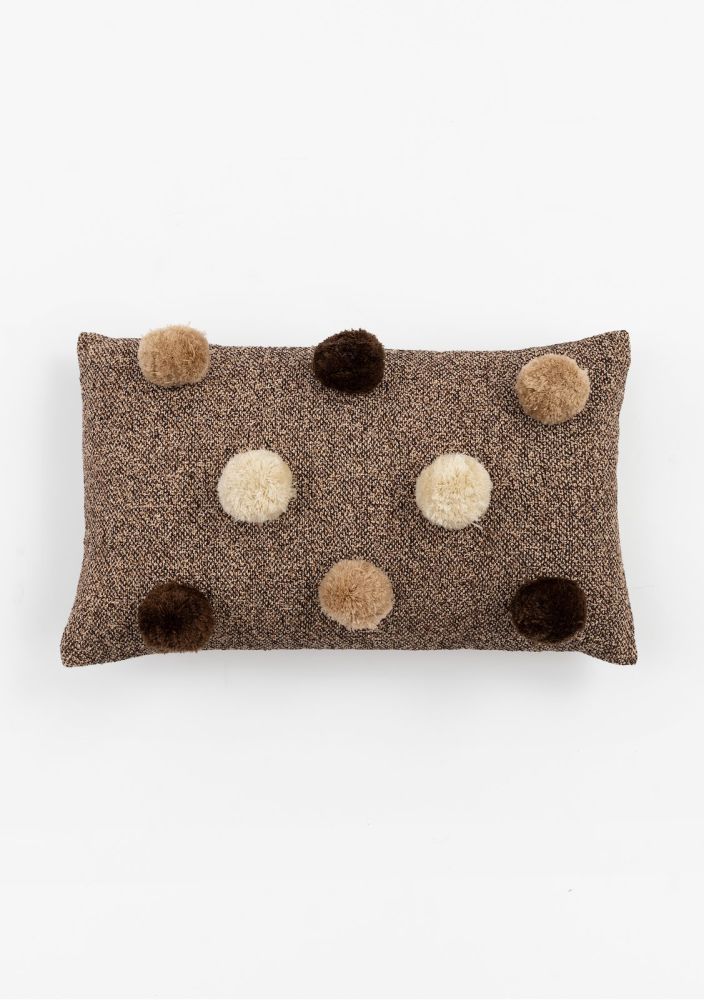 Breng een subtiele en stijlvolle touch in je interieur met het COCOmaison Pomme kussen. Dit kussen, met een afmeting van 30 x 50 cm, is uitgevoerd in een warme bruine kleur en versierd met verschillende tinten bruine pompons die een unieke uitstraling geven. Het Pomme kussen is geschikt om een gezellige sfeer te creëren in elke kamer, of het nu op de bank, een fauteuil of je bed ligt. Voeg een vleugje charme en warmte toe aan je huis met het Pomme kussen uit onze collectie en geniet van de subtiele accenten.