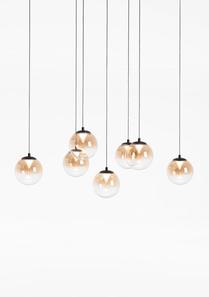 Ontdek de elegante COCOmaison Lexi hanglamp, een verfijnde toevoeging aan elk interieur. Deze prachtige hanglamp bestaat uit 7 glazen bollen, elk voorzien van een decoratieve druppel in het glas, wat een uniek en stijlvol effect creëert. Met een totale diameter van 90 cm en een hoogte die verstelbaar is tot maximaal 150 cm, is de Lexi hanglamp een echte blikvanger in je interieur. De geïntegreerde LED verlichting zorgt voor een helder en energiezuinig licht, daarnaast is deze lamp dimbaar (dimmer niet meegeleverd) en kun je de lichtintensiteit dus eenvoudig aanpassen. Maak de set compleet met de bijpassende tafellamp en vloerlamp, die dezelfde stijlvolle uitstraling hebben.