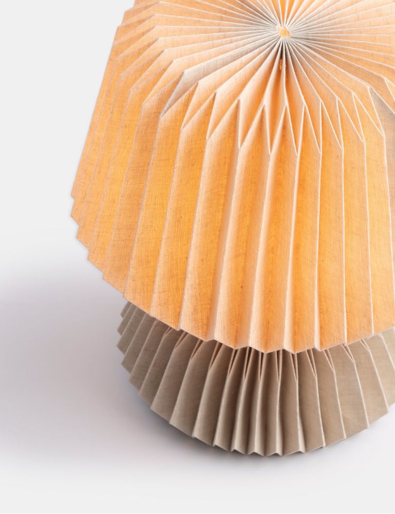 COCOmaison is dol op verrassende ontwerpen en dat zie je zeker terug in de Rikke tafellamp. De kap en voet van deze bijzondere lamp zijn gemaakt van stevig papier dat als smockwerk gevouwen is. Daarmee krijgt de lamp een origami-achtige uitstraling die helemaal past in de Japandi woonstijl. De hoogte is 33cm en de doorsnede 29cm, maar het is vooral het materiaal dat opvalt. Het papier heeft een naturel kleur en is semi-transparant, zodat de lamp een prachtig gedempt warm licht verspreidt als hij aan is. Maar ook als hij overdag uit is, is het een opvallend design object in huis.