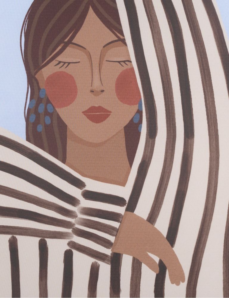 Ontdek Zenya, een verfijnd digitaal portret van Puck van Helvoirt, waarin rust en stijl samenkomen. Het werk toont een persoon in een gestreepte beige trui tegen een lichtblauwe achtergrond – een minimalistisch en krachtig beeld dat uitnodigt tot reflectie. De zachte kleuren en grafische eenvoud geven Zenya een moderne, serene uitstraling.Het ontwerp is gedrukt op een hoogwaardig polyester doek, dat eenvoudig verwisselbaar is in een stijlvol metalen frame. Dankzij dit slimme systeem kun je meerdere kunstwerken uit de collectie van Puck van Helvoirt afwisselen, passend bij je interieur, stemming of seizoen – zonder extra montage.Zenya is digitaal ontworpen, wat zorgt voor strakke lijnen, subtiele kleurcontrasten en een eigentijdse esthetiek. In combinatie met het verwisselbare doek biedt dit kunstwerk niet alleen visuele rust, maar ook functionele flexibiliteit.Verkrijgbaar in drie formaten – 70×100 cm, 90×140 cm en 125×185 cm – is Zenya een perfecte keuze voor wie houdt van kunst die kalmeert, verrijkt en meebeweegt.