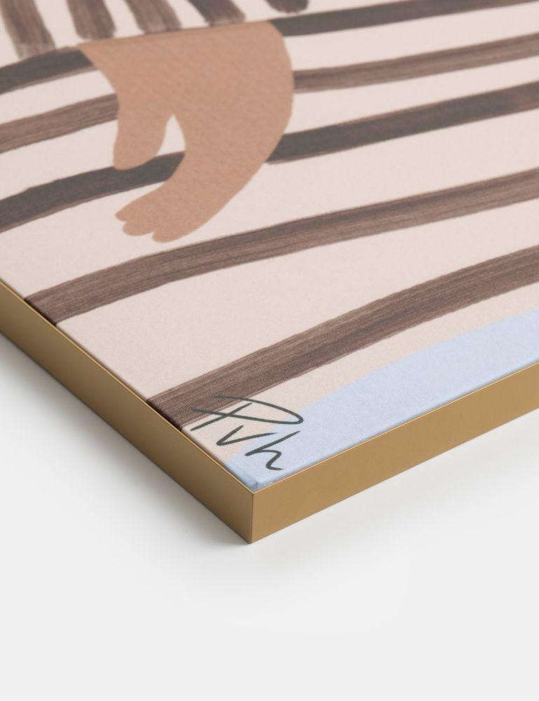 Ontdek Zenya, een verfijnd digitaal portret van Puck van Helvoirt, waarin rust en stijl samenkomen. Het werk toont een persoon in een gestreepte beige trui tegen een lichtblauwe achtergrond – een minimalistisch en krachtig beeld dat uitnodigt tot reflectie. De zachte kleuren en grafische eenvoud geven Zenya een moderne, serene uitstraling.Het ontwerp is gedrukt op een hoogwaardig polyester doek, dat eenvoudig verwisselbaar is in een stijlvol metalen frame. Dankzij dit slimme systeem kun je meerdere kunstwerken uit de collectie van Puck van Helvoirt afwisselen, passend bij je interieur, stemming of seizoen – zonder extra montage.Zenya is digitaal ontworpen, wat zorgt voor strakke lijnen, subtiele kleurcontrasten en een eigentijdse esthetiek. In combinatie met het verwisselbare doek biedt dit kunstwerk niet alleen visuele rust, maar ook functionele flexibiliteit.Verkrijgbaar in drie formaten – 70×100 cm, 90×140 cm en 125×185 cm – is Zenya een perfecte keuze voor wie houdt van kunst die kalmeert, verrijkt en meebeweegt.